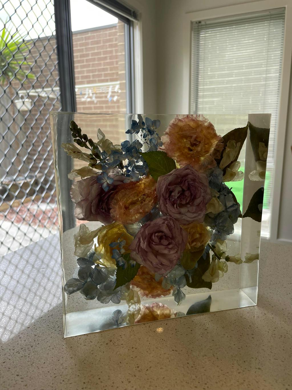 This square includes Flower Preserving & Casting. Every piece is handmade and one-of-a-kind, telling a story of joy and beauty that will last for generations. Small ‘imperfections’ such as micro bubbles, uneven edging due to the moulds, or small cavities can be normal. These don’t detract from the overall piece, they are just signatures of handmade items not produced in factories.